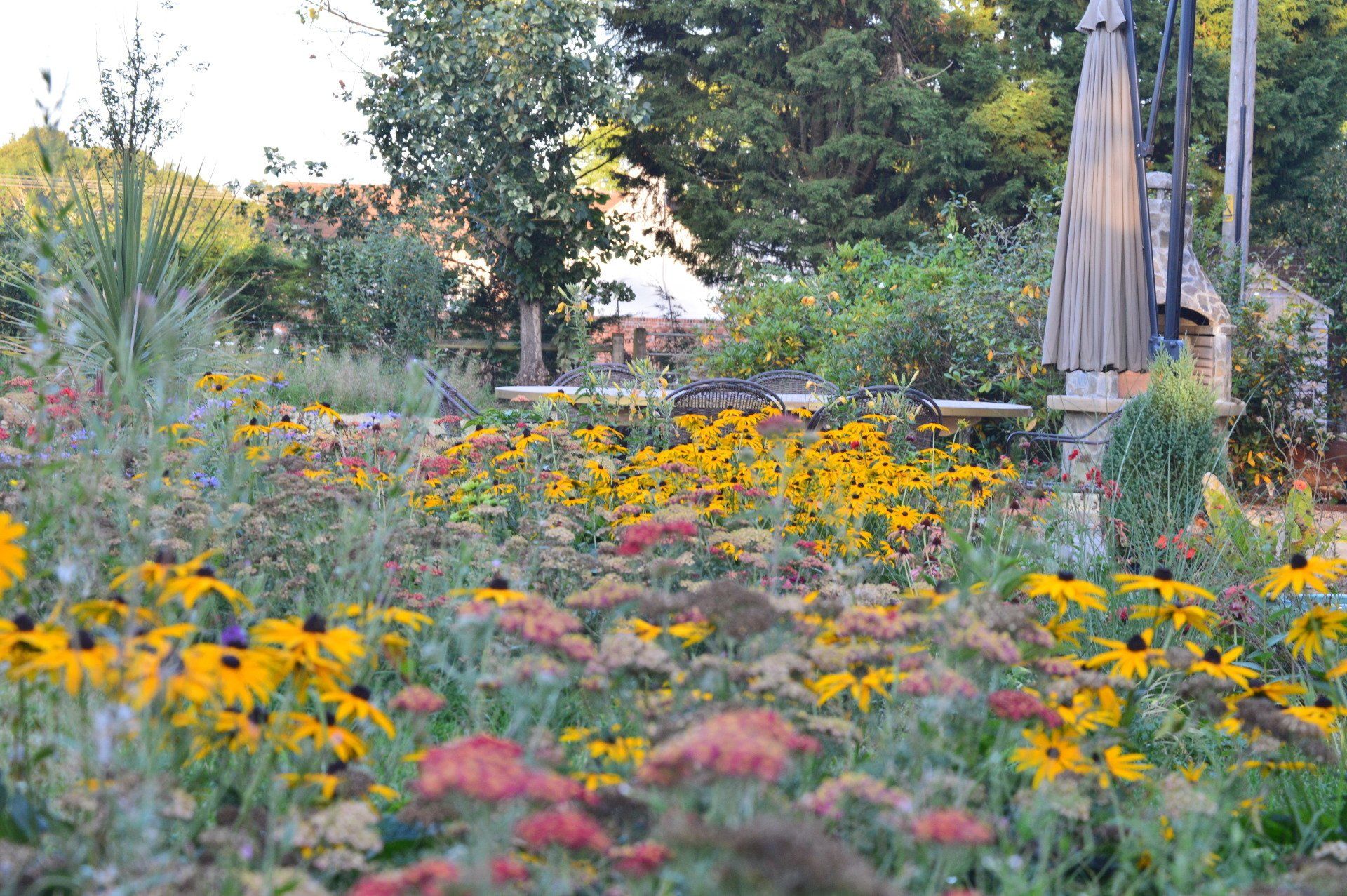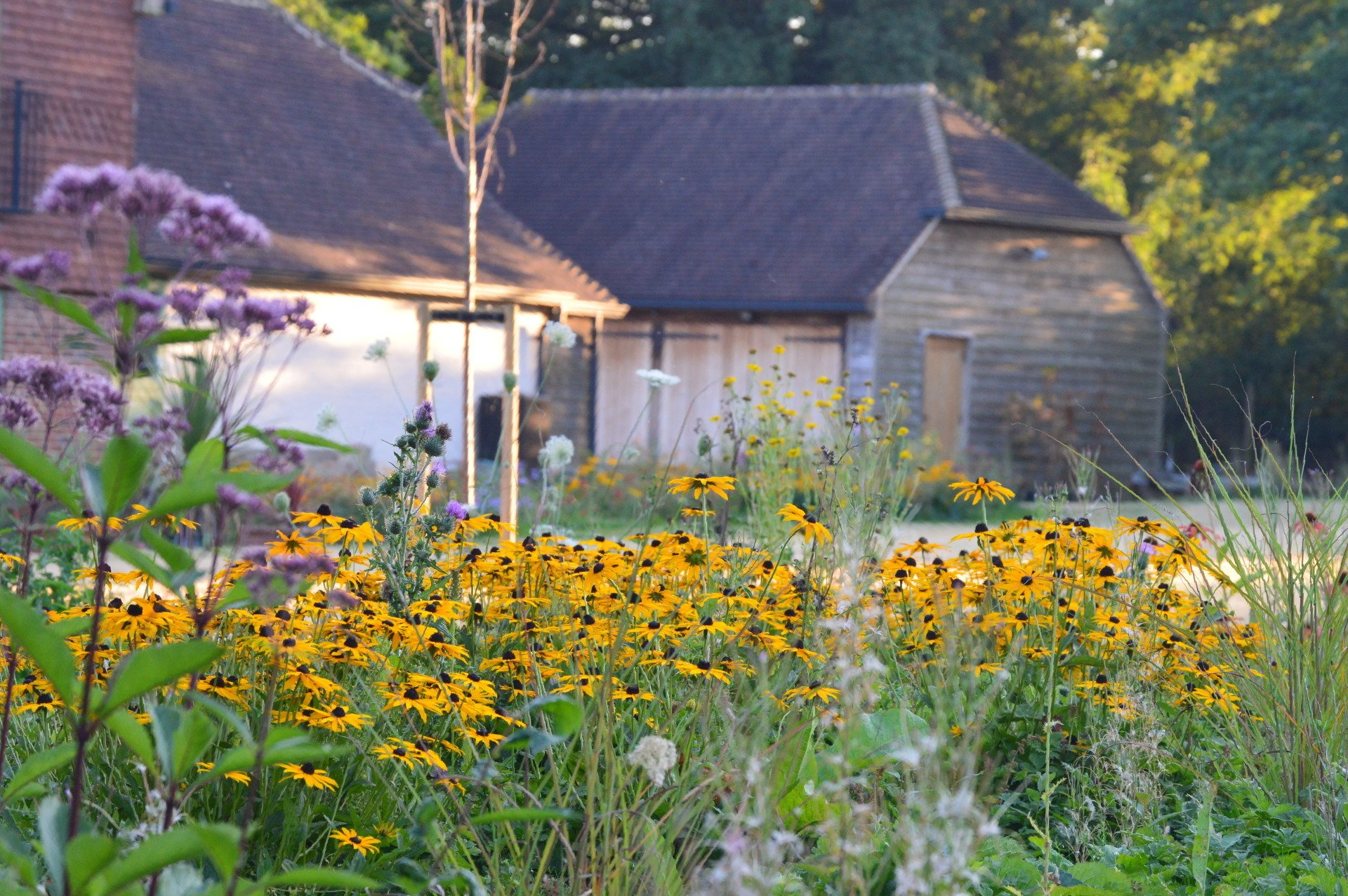 Apart from being inspired, in principle by the Knepp re-wilding project, I thought that it would be good to introduce some mixed borders of flowering herbaceous perennials and ornamental grasses, a perennial meadow like the Prairie Planting that was popularised by Piet Oudolf and can been seen at the nearby Sussex Prairie gardens. This extends the flowering season, adds more interest throughout the seasons and provides a wider range of food plants for pollinating insects, such as the butterflies and bees.