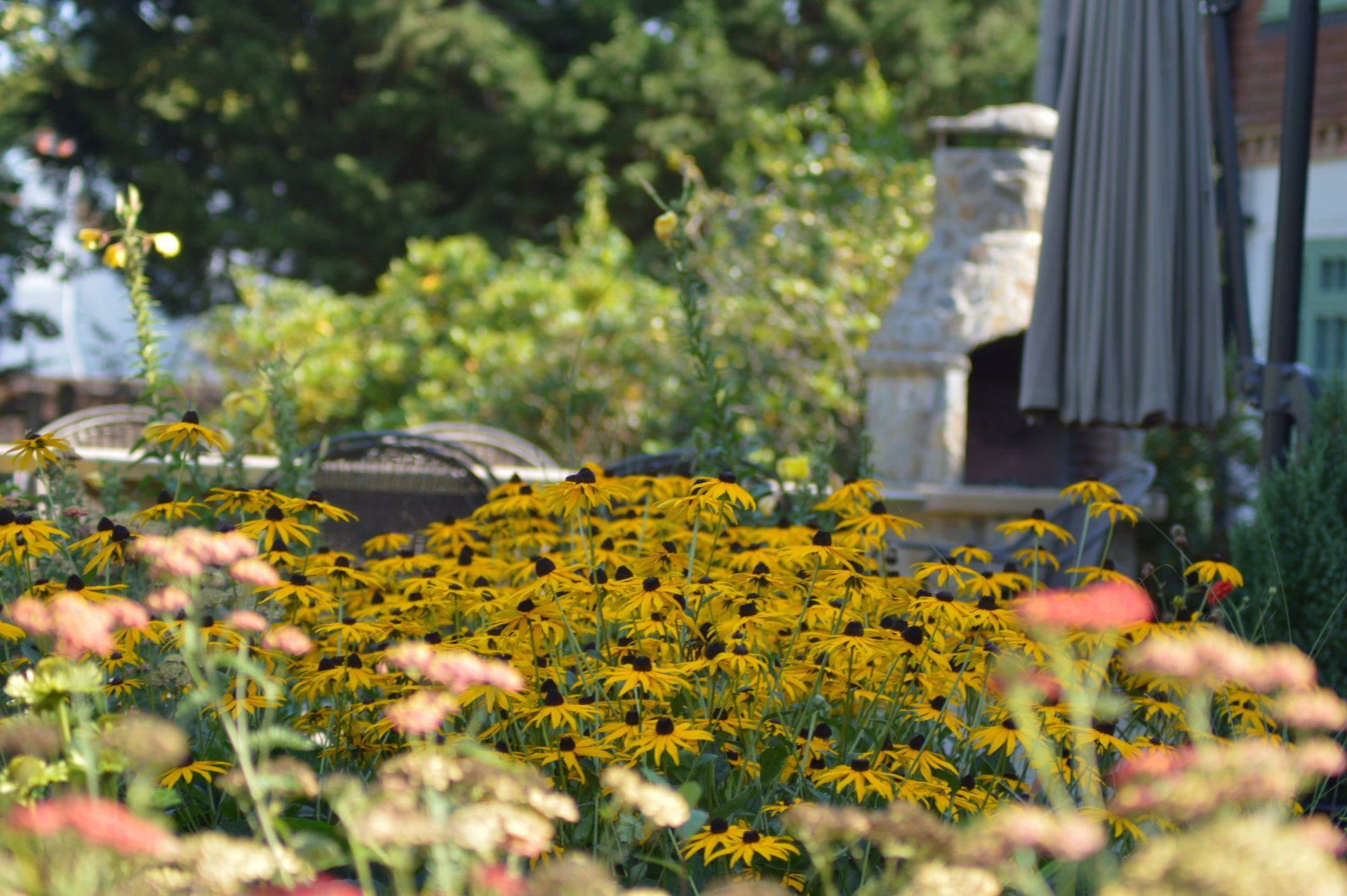 In the winter of 2021, preparation work began for the wildflower meadow areas and the prairie style borders. These areas were sprayed with weed killer, as recommended by a wildflower seed specialist, to kill off the existing tough grasses which compete vigorously with the more delicate wildflower species, especially in the early years of development.